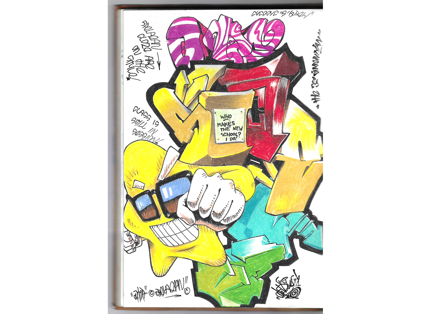 I haven't been able to locate any photos of murals I did with paint, but I scanned a few pages out of old sketchbooks I still have sitting around. Some of these were references for pieces which made it onto walls.